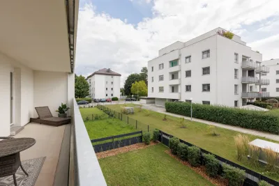 Jede Wohnung verfügt über eine Freifläche wie Garten und/oder Terrasse bzw. Balkon. Zudem ist jeder Einheit ein Tiefgaragenplatz zugewiesen.