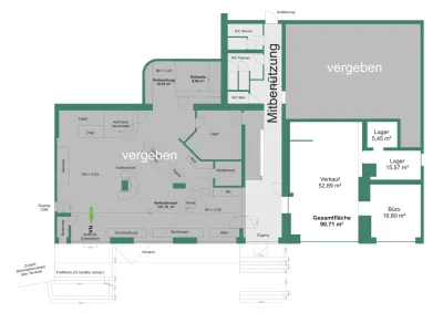 Die vermietbare Gewerbefläche ist über einen eigenen Eingang erreichbar und umfasst insgesamt ca. 90,71 m².