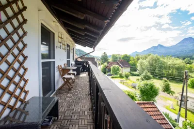 Ein besonderes Highlight sind die drei Balkone, die Ihnen die Möglichkeit bieten, die Sonne zu genießen und den atemberaubenden Berg- und Fernblick in vollen Zügen auszukosten. Ob morgens beim Kaffee, nachmittags beim Lesen oder abends beim Entspannen – hier erleben Sie die Schönheit der Natur zu jeder Tageszeit. Der Garten rundet das Angebot ab und bietet zusätzlichen Raum für Erholung und Freizeitaktivitäten im Freien.