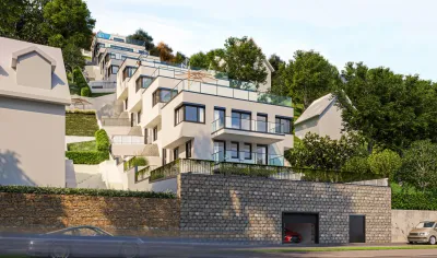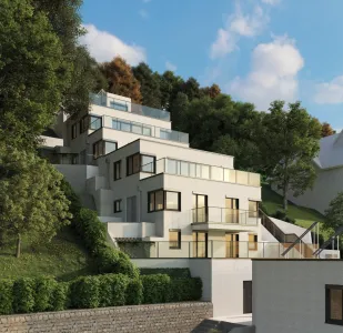 The River Terrace ist eine herausragende Wohnanlage am Nordosthang des Leopoldsbergs im begehrten 19. Wiener Bezirk. Hier entstehen sechs luxuriöse Wohneinheiten, die durch ihre außergewöhnliche Architektur und eine erstklassige Ausstattung bestechen. Jedes Haus wurde so gestaltet, dass modernes Design mit der Natur in Einklang steht – ein harmonisches Gesamtkonzept, das Eleganz und Lebensqualität auf höchstem Niveau bietet. Alle Häuser genießen einen unvergleichlichen Blick über die Donau und schaffen mit ihren klaren Linien und der harmonischen Einbindung in die grüne Hanglage ein unverwechselbares Wohnerlebnis.