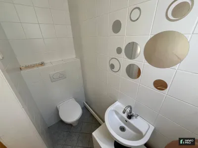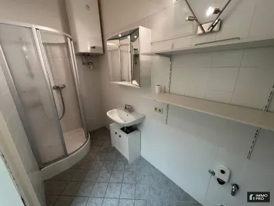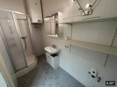 - einem Badezimmer mit Dusche, Sprossenheizkörper und Waschmaschinenanschluss,+