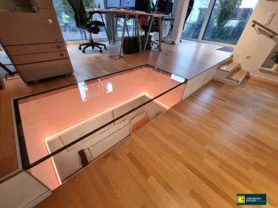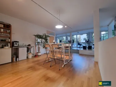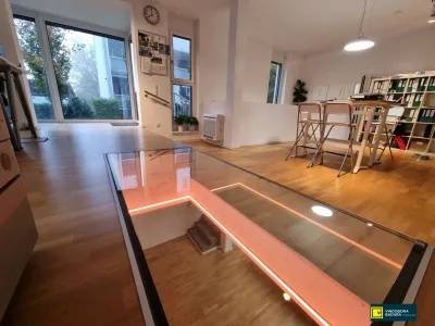 Den Kellerbereich kann man aufgrund einer großzügigen Treppe und einer wunderschönen Glasfläche an der Decke sehr gut als Meetingraum nutzen. Diese Immobilie ist durch ihren loftartigen Charakter und ihre offen angelegten Räumlichkeiten ideal für gewerbetreibende Architekten, Rechtsanwälte, Bauträger oder auch Fotographen.
