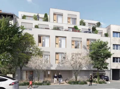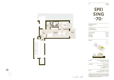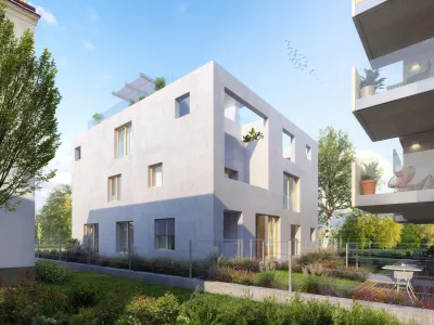 In der SPEISING:70 entsteht ein modernes Wohnprojekt mit zwei prägnanten Baukörpern in reduzierter, kubistischer Architektur. Zur Straße hin öffnet sich ein Gebäudeteil mit kompakteren Wohneinheiten, deren flächenbündige Fichtenholz-Fenster dem Ensemble ein unverwechselbares Erscheinungsbild verleihen. Einzigartige Markisoletten sorgen für stilvollen Sonnenschutz und setzen gleichzeitig gestalterische Akzente. Die hofseitig ausgerichteten, größeren Wohnungen profitieren von einer ruhigen, westseitigen Lage und besonders großzügigen Außenflächen.