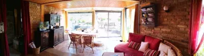 Die Liegenschaft in Massivbauweise hat Charme und gliedert sich in einen großen Wohnraum, ein Bad mit WC, eine kleine Küche, ein Schlafzimmer und ein Kabinett. Der Wohnraum und die Terrasse gehen beinahe nahtlos ineinander über, nur getrennt durch eine Glasfront mit großer Schiebetür. Die Terrasse selbst ist mit ca. 27 m² recht gut dimensioniert, zusätzlich gibt es noch einen Grillplatz, wo weitere 4 Personen Platz finden würden.