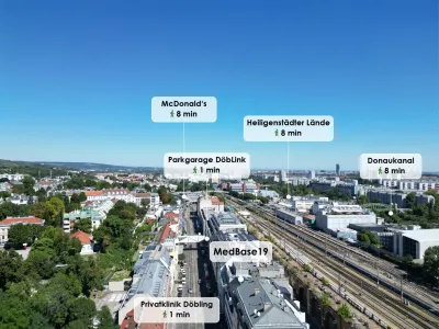 An der Adresse Heiligenstädter Straße 38, direkt gegenüber der Privatklinik Döbling, befindet sich das MedBase19, welches auf 4 Geschoßen zahlreiche Ordinationseinheiten bietet. Die äußerst repräsentative Lage auf der Heiligenstädter Straße direkt gegenüber der Privatklinik, nur 4 Gehminuten von der U4/U6 Station Spittelau sowie der Straßenbahnhaltestelle D entfernt und in unmittelbarer Nachbarschaft zahlreicher Betriebe und Büros, garantiert hohe Frequenz und beste Patienten-Zielgruppen.