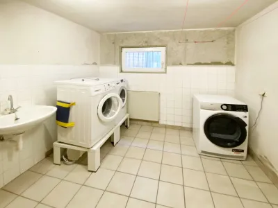 Keller: Waschküche, ehemaliger Saunabereich, Lager- und Technikräume, Werkstatt, WC, Doppelgarage