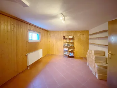 Die früher im Keller untergebrachte Sauna kam nach dem Auszug der Kinder ins Erdgeschoss und kann natürlich jederzeit wieder an den alten Standort übersiedelt werden.