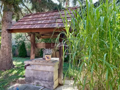 Der idyllische, sanierte Brunnen rundet das Angebot auf.