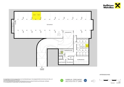 Die einzelnen Häuser werden ohne Tiefgaragenstellplatz verkauft, den Käufern steht es aber frei, pro Haus zwei Stellplätze a` € 25.000,-- zu erwerben. Es besteht auch die Möglichkeit, einen Tiefgaragenstellplatz anzumieten (statt Kauf).