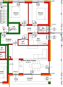Vorraum - Wohn/Ess/Küche - Bad mit Dusche und WC- separates WC - Schlafzimmer - Kinderzimmer/Büro - Terrasse - Abstellraum