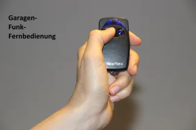 Das Garagentor öffnet per Handfunksender oder Schlüssel (jeweils 1 Stück in der Miete enthalten).