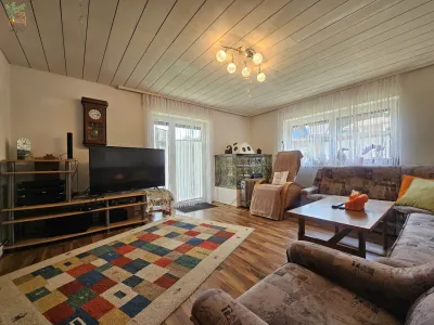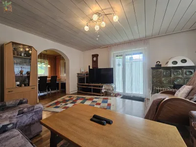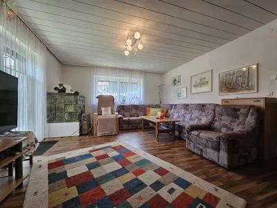 Der Wohnbereich mit Zugang zum Garten und zur Gartenlaube ist ebenerdig er-