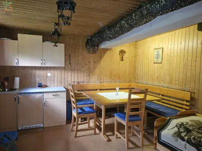 reichbar. Hier finden Sie die große, helle Stube mit Kachelofen und Essecke, drei