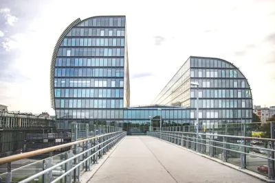 Die neue Landmarke an der Donau erinnert an zwei gegenüberliegende Segel: Gate 1 mit zwölf Obergeschoßen und Gate 2 mit acht Obergeschoßen schaffen eine architektonische Nähe zum Fluss.