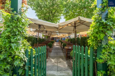 Im Erdgeschoss befinden sich aktuell zwei gemütliche Gasträume sowie eine Stube und der Schankraum mit Küche. Über einen verdeckten Treppenaufgang ist auch das Dachgeschoss erschlossen. Dieses eignet sich ideal zu Wohnzwecken und verfügt über ca. 117 m² Flächenangebot und charmante Ausblicke auf die umliegende Nachbarschaft. Der über 200 m² große Garten mit schönem Altbaumbestand dient der Gastronomie aktuell als beliebter Treffpunkt für Gäste. Bei einem netten Gläschen Wein lässt es sich hier in idyllischer Vorstadtatmosphäre wunderbar entspannen. Das geschäftige Treiben auf der Straße dient als unterhaltsame Kulisse im Hintergrund. Ein ca. 24 m² großer Weinkeller bietet ideale Bedingungen für die Lagerung von edlen Tropfen und Vorräten sämtlicher Art.