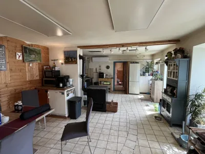 Zusätzlich gibt es eine Garage mit Galerie und einer Fläche von ca 160 m², die auch für wirtschaftliche Zwecke gut genutzt werden kann.
