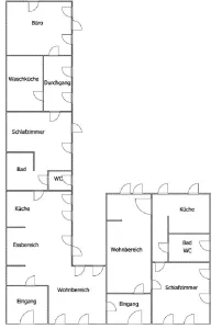 Beide Teile haben ein eigenes Bad, Küche, Wohnzimmer und der Größe entsprechend viele Schlafzimmer.