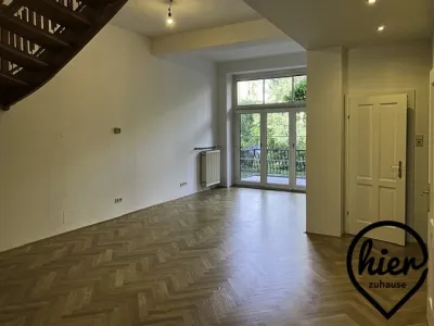 Im Hochparterre befinden sich zwei Wohnungen. Eine dieser Wohnungen ist als Maisonette ausgeführt und weist eine Wohnfläche von 208 m² auf. Die zweite Einheit im Hochparterre ist derzeit vermietet und hat eine Wohnfläche von 93 m².
