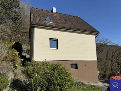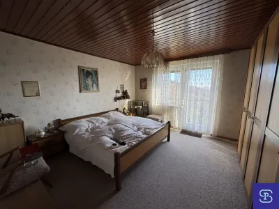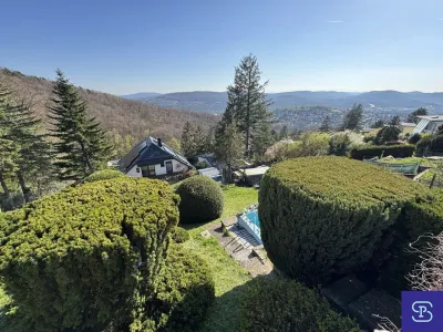 Die angebotene Liegenschaft mit spektakulärem Fernblick befindet sich in wunderschöner Lage am Satzberg, direkt am Waldrand. Das Grundstück ist derzeit mit einem kleinen, gepflegten Einfamilienhaus aus den 1950er Jahren bebaut und verfügt über ca. 113m² Nutzfläche. Das Haus besteht aus 5 Zimmern, 1 Badezimmer, Küche, 2 WC´s und diversen kleinen Nebenräumen, Terrasse und Balkon,. Eine geringfügige Vergrößerung, z:B. durch Erweiterung des Dachausbaus wäre möglich. Alternativ bietet sich auch die Neubebauung des Grundstücks an. (Gemäß Flächenwidmung Bk WI, 6,5m ogk BB)