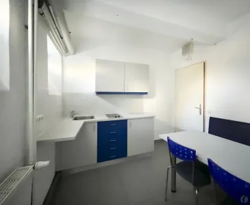 Im Souterrain befinden sich weitere Räumlichkeiten, die Ihnen mit den anderen Mietern der Praxis im Erdgeschoss zur gemeinsamen Nutzung zur Verfügung stehen, nämlich eine Küche mit Sitzecke, eine Dusche sowie ein weiterer Raum mit Spinden für die Mitarbeiter sowie die Möglichkeit eine Waschmaschine anzuschließen.