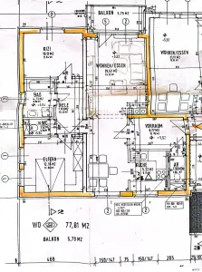 Die sehr gepflegte, dreiseitig belichtete 77,81m² Eigentumswohnung mit Balkon im 2.Obergeschoss ist eingeteilt in: