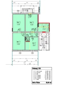 Die Wohnung befindet sich innen in einem unsanierten Zustand, der sonstige Innenausbau erfolgt durch den Käufer: Badsanierung, Kontrolle Elektrik, Heizkörper und Leitungen in der Wohnung erneuern, Bodenbeläge erneuern, Wände verspachteln und malen