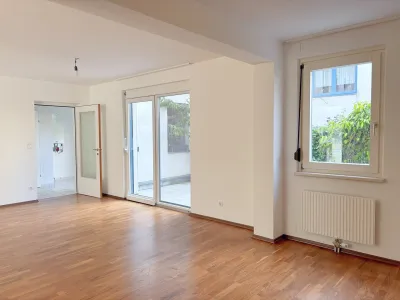 Bereits beim Eintreten empfängt Sie ein weitläufiger, zentraler Vorraum, von dem aus alle Räume separat begehbar sind – ein durchdachter Grundriss, der Klarheit und Funktionalität verbindet. Der großzügige Wohnbereich öffnet sich direkt zur sonnigen Terrasse und zum privaten Garten, der den Wohnraum auf angenehme Weise ins Freie erweitert. Hier genießen Sie entspannte Stunden im Grünen – mit viel Privatsphäre.
