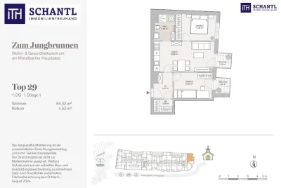 Besser geht´s nicht - ZUM JUNGBRUNNEN! Dieses großartige Neubau-Projekt befindet sich direkt am Mistelbacher Hauptplatz - Leben im Herzen der Stadt! Profitieren Sie von einer unglaublich tollen Infrastruktur, quasi alles was das Herz begehrt befindet sich ums Eck und ist fußläufig erreichbar. Verschiedene Banken, eine Apotheke, mehrere Bäckereien für das frische Gebäck in der Früh (auch am Sonntag), Supermärkte, Drogerien, ein Friseur uvm. befinden sich rund um den Hauptplatz und nur wenige Gehminuten entfernt. Öffis: Busbahnhof am Hauptplatz / Wenige Minuten zum Bahnhof (REX 2, S2) für eine perfekte Anbindung an die Nachbarorte bzw. ca. 40 Minuten nach Wien