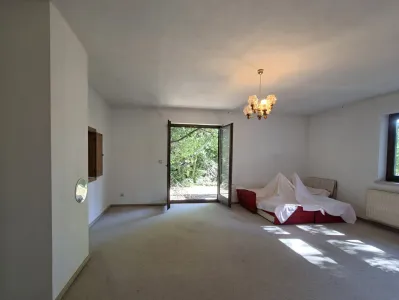 - 26,5m² Wohnzimmer mit Kamin und Ausgang auf Terrasse und Garten