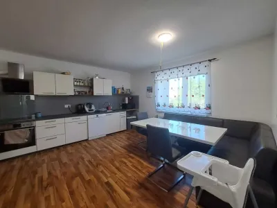 - große Küche mit schöner Küchenzeile/E-Geräte und Essecke
