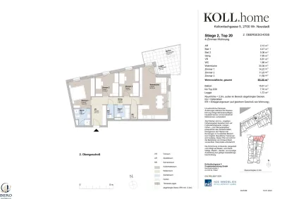 Die hier angebotene Top 2 | 20 befindet sich im 2. OG, hat 4x Zimmer misst ca. 95,55m2 Wohnfläche | ca. 15,61m2 Balkon | ca. 1,73m2 Loggia.