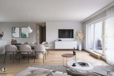 - Offene Wohn-Ess-Bereiche mit Zugang zu Balkon, Terrasse oder Garten