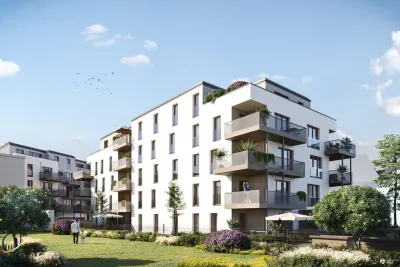Das Projekt bietet 67 freifinanzierte Neubauwohnungen mit 2 bis 4 Zimmern und Wohnflächen zwischen ca. 40 und 100 m². Große Fensterflächen sorgen für lichtdurchflutete Räume, während private Freiflächen wie Gärten, Loggien, Balkone oder Terrassen zusätzlichen Wohnkomfort bieten.