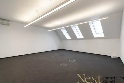 Die bodentiefen Fenster als auch zahlreiche Dachschrägen-Fenster schaffen mit viel natürlichem Licht eine optimale Arbeitsatmosphäre.