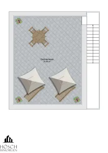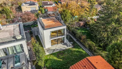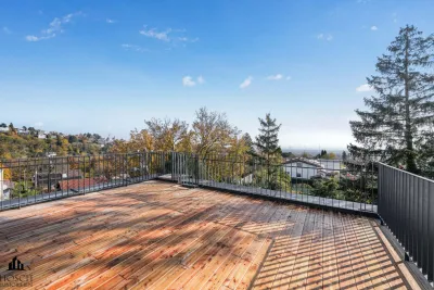 Den wunderschönen Garten inkl. Terrasse ergänzt ein Balkon im OG sowie die ca. 35,56 m² große Dachterrasse mit einem umwerfenden 360-Grad-Blick über Wien!