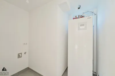 Die Heizung erfolgt mittels Luftwärmepumpe; die Fußbodenheizung sorgt für eine angenehme Wärme.