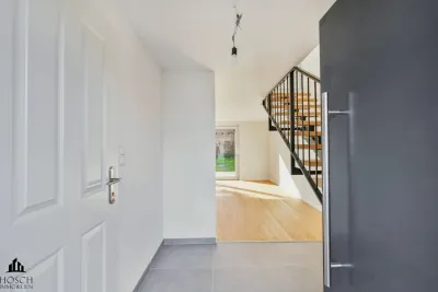 Die hochwertige Ausstattung des Hauses lässt keine Wünsche offen. Die Böden sind mit zeitlos eleganten Fliesen und wunderschönem Parkett versehen.