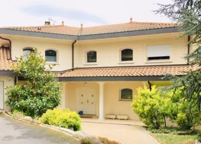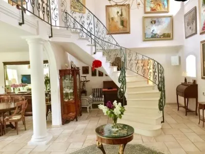 Das Haus verfügt über insgesamt 8 Zimmer, darunter 5 Schlafzimmer sowie mehrere Badezimmer und Gäste-WCs. Die hochwertigen Möbel und der Stuck verleihen dem Objekt einen exklusiven und stilvollen Charakter.