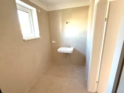 Noch vor dem Betreten Ihres neuen Zuhauses werden Sie vom einladenden Außenbereich und der großen modernen Eingangstür empfangen. Im schicken Vorraum angekommen, erblickt man sofort den hell strahlenden Wohnbereich mit Zugang zur Terrasse und dem Garten. Große Fensterflächen sorgen für natürliche Belichtung über den ganzen Tag verteilt. Die offene Küche bietet viel Platz für gemeinsames Kochen und Genießen. Ergänzend verfügt das Erdgeschoß noch über kleines Badezimmer mit WC, einen Abstellraum und einen zusätzlichen geräumigen Raum, der sich ideal als Büro anbietet. Über den Stiegenaufgang im Vorraum gelangt man vom Erdgeschoß ins Obergeschoß.