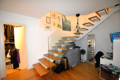 Die Wohnung besticht durch eine durchdachte Raumaufteilung auf zwei Ebenen. Besonders hervorzuheben ist die hervorragende Anbindung an das öffentliche Verkehrsnetz: Die U-Bahn-Station (Linie U1) befindet sich nur wenige Gehminuten entfernt und bringt Sie schnell und unkompliziert in die Wiener Innenstadt.