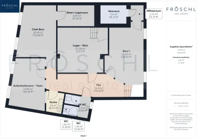 Mit einer großzügigen Gesamtfläche von rund 573 m² eröffnet diese Liegenschaft vielfältige Möglichkeiten für Gewerbe und Handel. Die flexible Raumaufteilung ermöglicht individuelle Geschäftskonzepte und bietet ideale Voraussetzungen für eine erfolgreiche Geschäftstätigkeit.