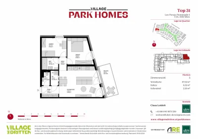„Village im Dritten – PARK HOMES“ Provisionsfreie 3-Zimmer Balkonwohnung in Richtung Osten (Erstbezug!) Top 31