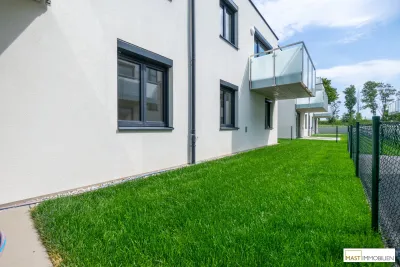 Nach Eintritt in die Wohnung gelangen Sie in ein großzügiges Vorzimmer mit ca. 12 m². Dieses bietet Ihnen direkten und separaten Zugang in sämtliche Wohn- & Nebenräumlichkeiten. Die beiden Kinderzimmer bieten eine Fläche von ca. 10 & 11 m². Das Elternschlafzimmer mit knapp 13 m² ausreichend Platz für ein Doppelbett und großzügigen Kleiderschrank. Selbstverständlich ist das modern gestaltete Badezimmer dass mit einer Wanne, Waschbecken & WM-Anschluss ausgestattet ist, vom WC separat begehbar. Der südlich-westlich ausgerichtete Garten mit einer Fläche von ca. 70 m² ist direkt von der Wohnküche begehbar.