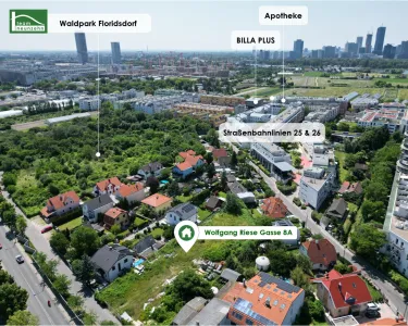 Das Projekt befindet sich in 1210 Wien, in der Wolfgang-Riese-Gasse 8A – einer angenehm ruhigen und dennoch hervorragend angebundenen Lage im Herzen von Floridsdorf. Eingebettet zwischen der Angyalföldstraße, Donaufelder Straße und dem Carminweg genießen Sie hier die perfekte Kombination aus urbanem Komfort und naturnaher Umgebung.