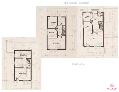 - drei Räume ca 25m2 I 9m2 I 15m2 I Wohnkeller mit Ausgang in den Garten I Lagerraum I Waschküche, Technik I