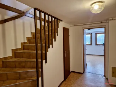 Eingangsbereich: Zugang über einen begrünten Vorgarten mit Parkplatz. Zentral gelegenes Vorzimmer mit offenem Stiegenaufgang.