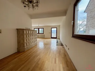 - Wohn-Esszimmer ca 37m2 mit angeschlossener südseitiger Terrasse ca 23 m2