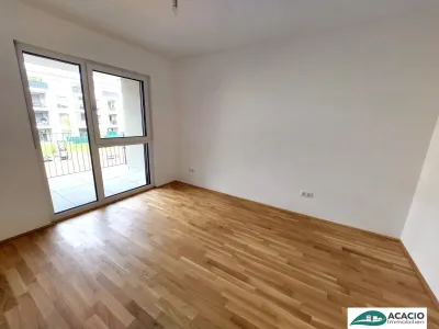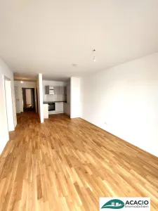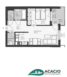 Über den Vorraum bzw. den anschließenden Gang gelangen Sie direkt in den offen gestalteten Koch-, Wohn- und Essbereich - von hier aus gelangen Sie auch direkt auf die nach Osten ausgerichtete Loggia. Die Wohnung verfügt darüber hinaus über einen Schlafraum, ein Badezimmer ist mit Badewanne und Waschtisch, einen Abstellraum und natürlich über ein separates WC.
