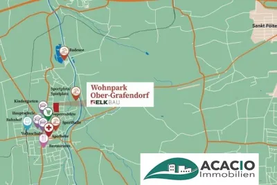 Der Wohnpark Ober-Grafendorf besticht durch ein harmonisches Gesamtkonzept mit großzügigem Kinderspielplatz und Grünflächen als zentralen Treffpunkt.