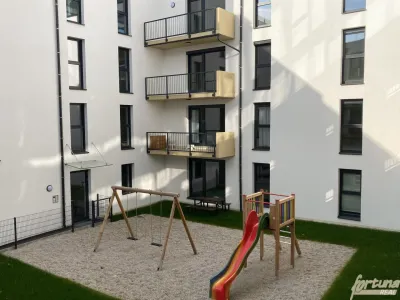 Im Inneren erwarten Sie optimierte Grundrisse und moderne Ausstattung: kontrollierte Wohnraumlüftung, Fußbodenheizung, Aufzüge in alle Stockwerke, Klimaanlagen in ausgewählten Wohnungen, moderne Gegensprechanlage und Raumthermostate. Bodentiefe Fenster durchfluten die Wohnungen mit natürlichem Licht - auf den Balkonen, Loggien und Terrassen lässt sich Sonne auftanken und Frischluft schnappen. Der Innenhof bietet Grünflächen und einen Spielplatz für die kleinen Bewohner. Die Anlage wird in sich geschlossen sein - das heißt, nur Eigentümer werden Zutritt haben.